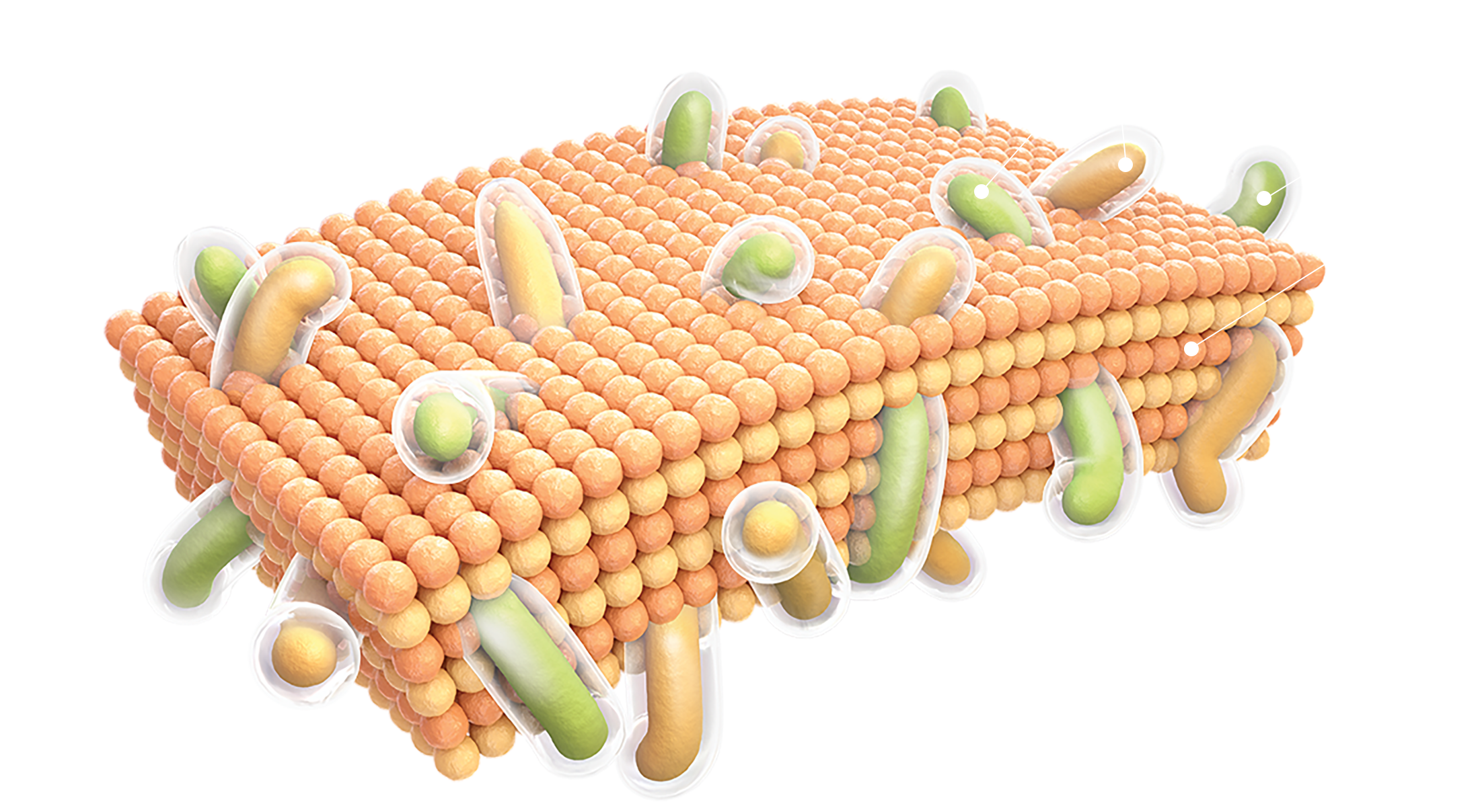 듀얼코팅 기술이 위산과 담즙산으로부터 유산균을 보호하고 잡아주며,